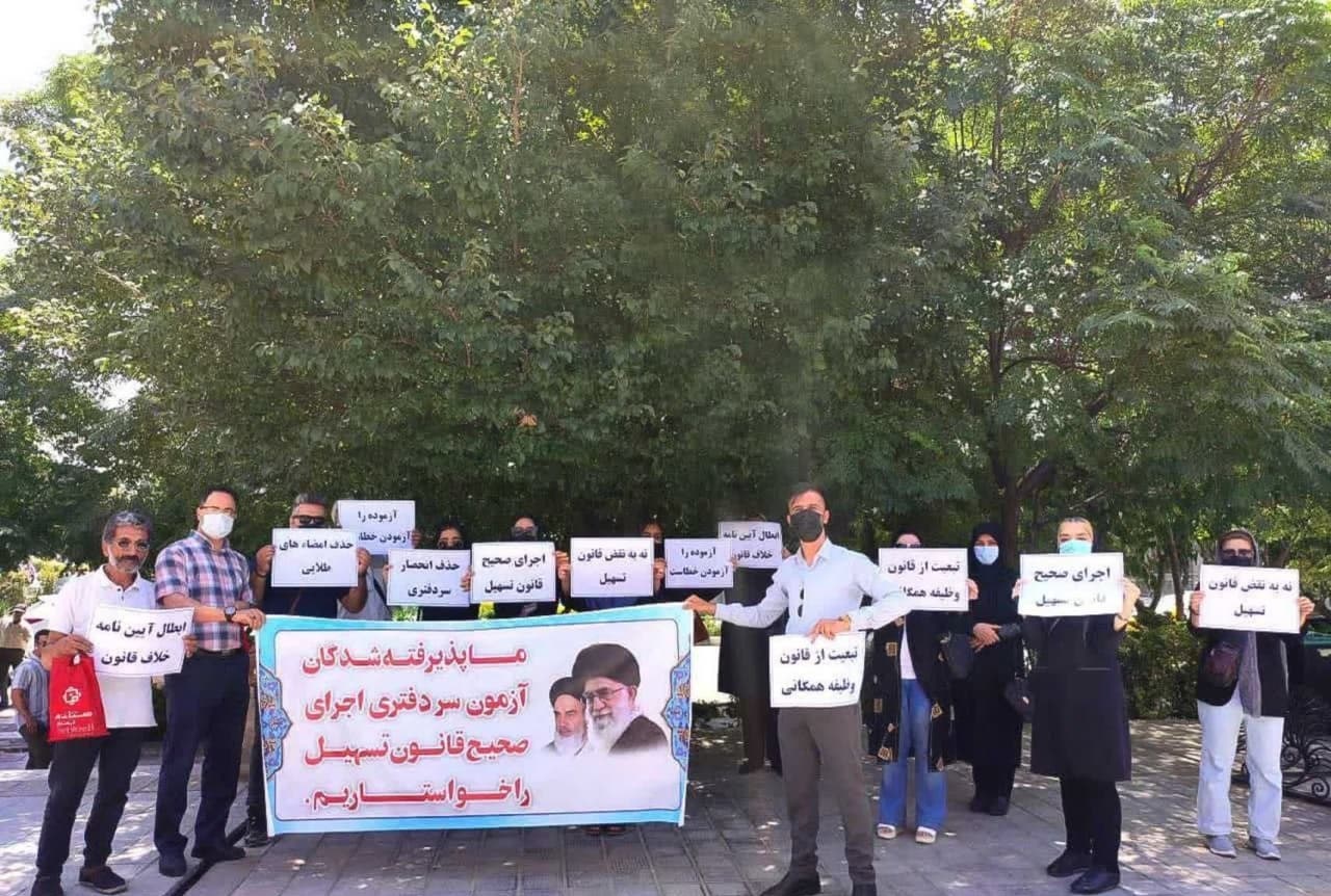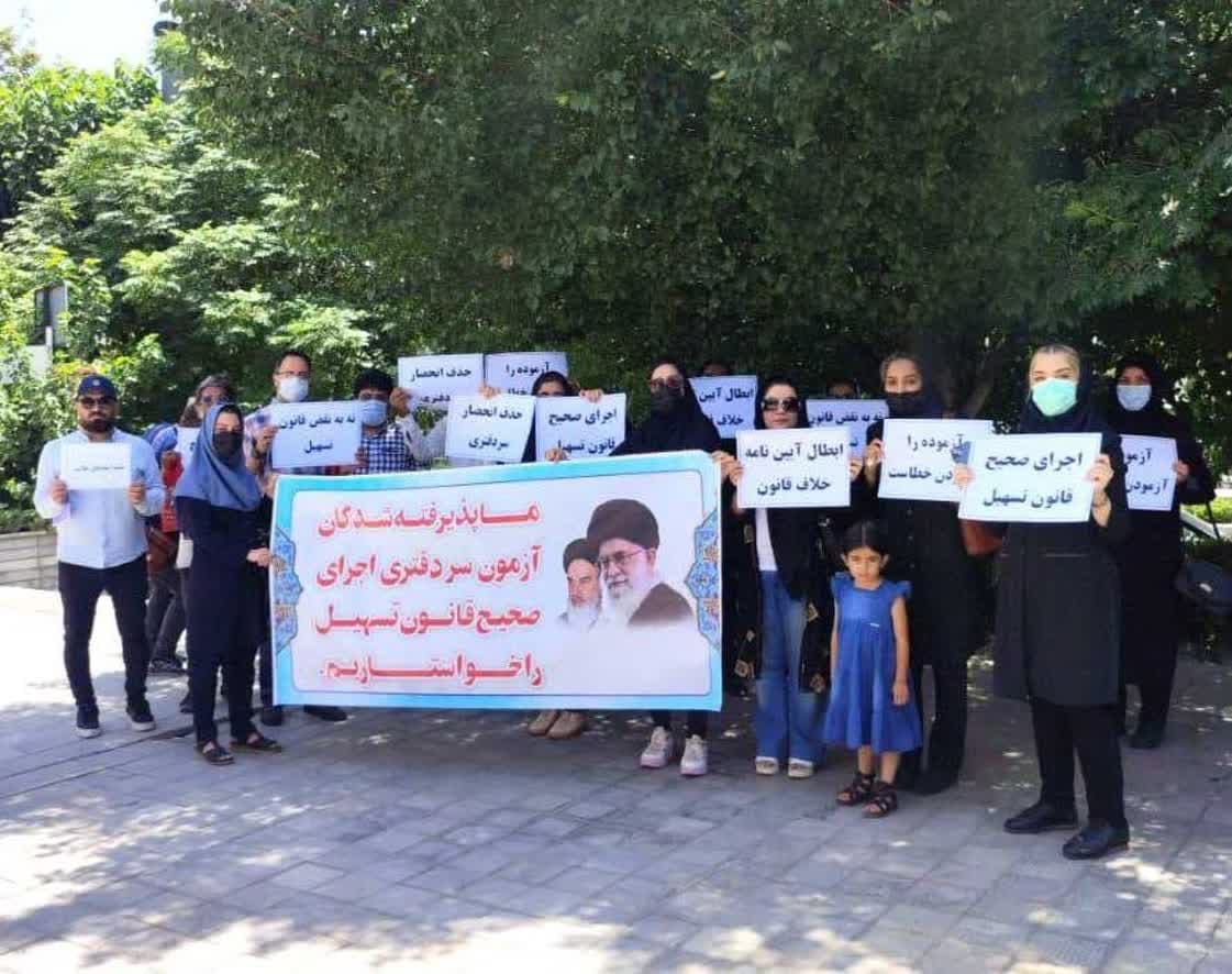 تجمع اعتراضی پذیرفتهشدگان آزمون سردفتری مقابل مجلس + (گزارش تصویری)